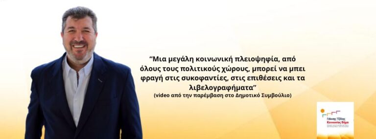 Με την προτροπή για μια μεγάλη κοινωνική πλειοψηφία ως φραγή στο νοσηρό κλίμα που προωθούν ορισμένοι κύκλοι μέσα από συκοφαντικά λιβελογραφήματα, ανθρώπων που σχετίζονται οικονομικά από το Δήμο, τόσο κατά του ιδίου όσο και κατά στελεχών της “Κοινωνίας Βήμα” έκλεισε την σύντομη παρέμβασή του ο Γιάννης Τζέλης στο δημοτικό συμβούλιο της 24ης Ιουλίου 2024, λέγοντας … Συνεχίστε να διαβάζετε το Γιάννη Τζέλης : Μια μεγάλη κοινωνική πλειοψηφία, από όλους τους πολιτικούς χώρους, μπορεί να μπει φραγή στις συκοφαντίες, στις επιθέσεις και τα λιβελογραφήματα.